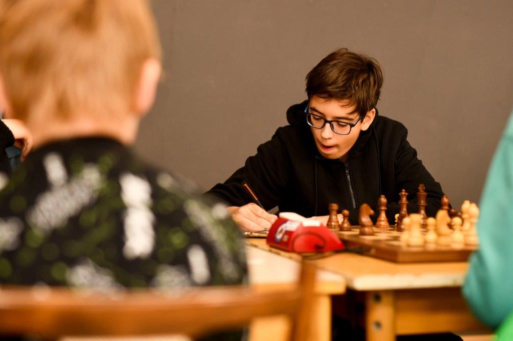 Mykyta Horkovyi jako další nováček MMaS nezklamal a se ziskem 5,5 bodu skončil na pěkném 20.místě výsledkové listiny. Tomovi Babulovi se letošní mistrovství nevydařilo a skončil se 4 body na 46.místě. Příště to musí být u Tomáška lepší. Jméno Babula zavazuje 😄. Poslední zástupce Kubík Paulec odehrál svůj standart a se ziskem 4,5 bodu obsadil konečné 38.místo. Pokud Kubík získá větší zápasovou praxi určitě se i on za rok posune ve výsledcích nahoru. V nejstarší kategorii do 16 let jsme věřili v postup Matěje Babuly. Bohužel i Matěje potkalo to, co Andreje „ošidná role favorita“. Zatím co Andrej to dotáhl do první pětky, Matymu 5 bodů stačilo jen na 22. místo. Tak budeme muset zkusit DK, protože by byla škoda aby ŠK na MČR v H16 nemělo zástupce. S 5 body se před Matěje ještě vtěsnal na 18.místo Šimon Starý, který odehrál velmi slušný turnaj nicméně na postup Šímovi ještě malinko chybělo. Martin Mitáček svoji druhou účastí na MMaS příjemně překvapil a 5 získaných bodů stačilo na pěknou 28. pozici. Příští MMaS si už Šíma a Martin bohužel z věkových důvodů nezahrají. I tak budou mít chlapci další cíle 1.Liga mládeže , Extraliga + junioři. Starší z bratrů Chauvinů Leon uhrál v turnaji 4.body a skončil 52. Tato nejstarší kategorie je už poměrně náročná, protože se v ní potkávají děti které už hrají a trénují více let. Proto každý získaný bod má svoji cenu. I Leonovi a ostatním v U16 děkujeme za snahu a přejeme další úspěšné výsledky. Co závěrem ? Turnaj se našim dětem i přes dílčí neúspěchy vydařil. Jen mě trošku zaráží článek v propozicích kdy se o 1. – 2. místo losuje ??? To by asi chtělo změnit🙄.